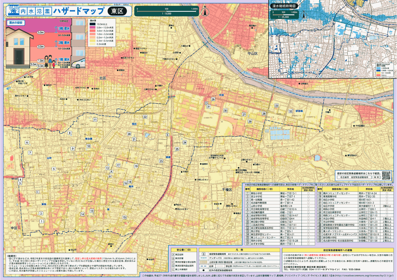 - 東区内には矢田川や香流川があり、これらの河川の氾濫が懸念されています。