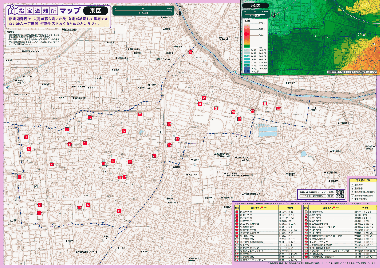 - 東区には徳川園や千種公園といった広域避難場所が整備されており、災害時に救援拠点として利用可能です。