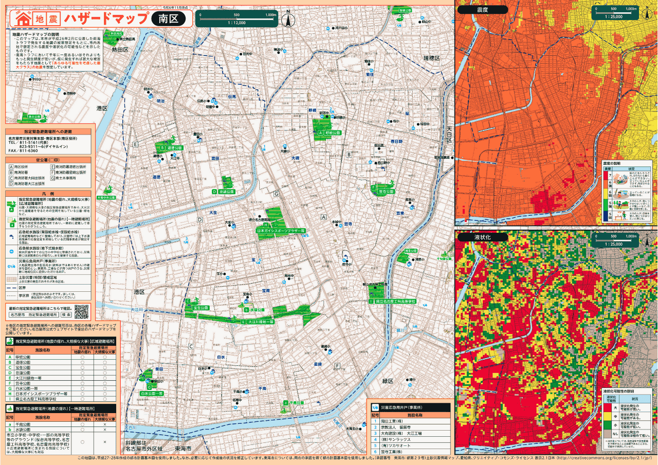 • 南区は濃尾平野の沖積地帯に含まれ、市域東部は台地、西部は沖積低地に分かれますが、全体として液状化リスクが高い地盤です。