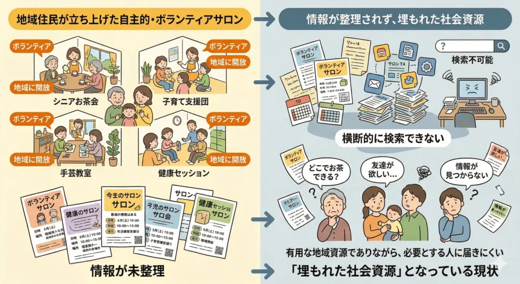 その結果、有用な地域資源でありながら、必要とする人に届きにくい、埋もれた社会資源となっていました。